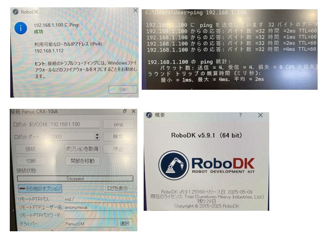 I am trying to connect the cobot Fanuc Crx-10iA to RoboDK. I have setted up all the IP adresses but still not able to connect.