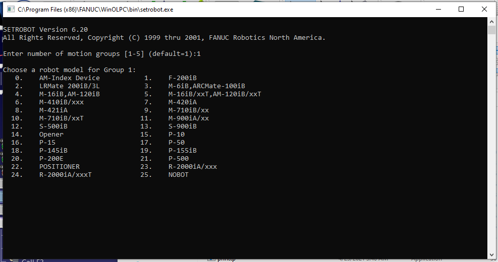 I looked into copying the files from C:\Program Files (x86)\FANUC\WinOLPC\bin into the C:\RoboDK\api\Fanuc folder, but I did not see a "Fanuc" folder. (Image of file directory attached). Also I looked into running setrobot.exe, but did not get the "Robot Neighborhood" window as described in another thread. I attached an image of the window I get when I run setrobot.exe.