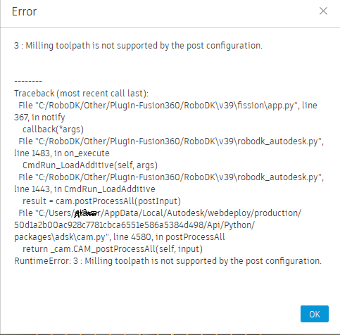 https://robodk.com/doc/en/Plugin-Fusion3...ualInstall You can download the latest version from here: https://robodk.com/downloads/plugins/Fus...plugin.zip (03-23-2022, 06:05 AM)Alex Wrote: You can follow the steps here: v39 is the current one I have. I did get it to work. Just can't use the Robodk button on the additive tab but when switching back to the mill tab then sending it to RoboDK it works great.