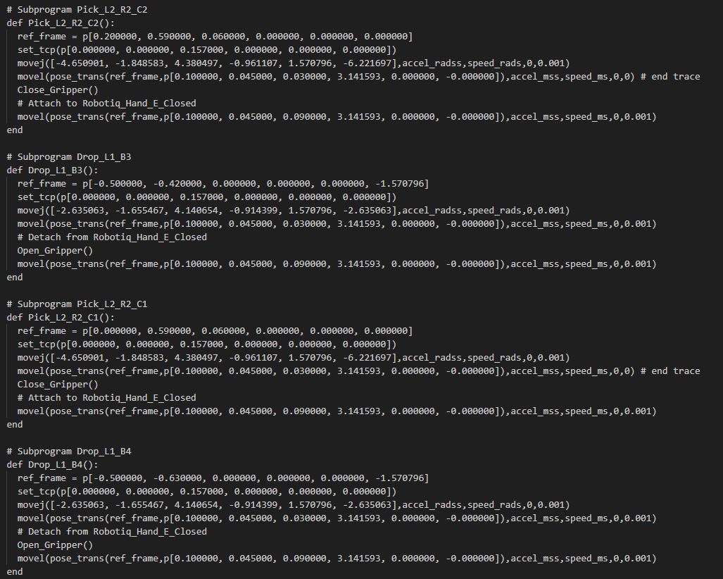 I believe this is due to a "frame" or "joint target" issue in my procedure but I do not know how to fix it. So my simulation is doing what I intended to do but my generated code and robot run is not matching my simulation.  see that the joint move is just repeating the same joint angles for every subprogram like using the ref_frame nut it is not the joint angles based on the absolute robot angles considering the absolute target position.