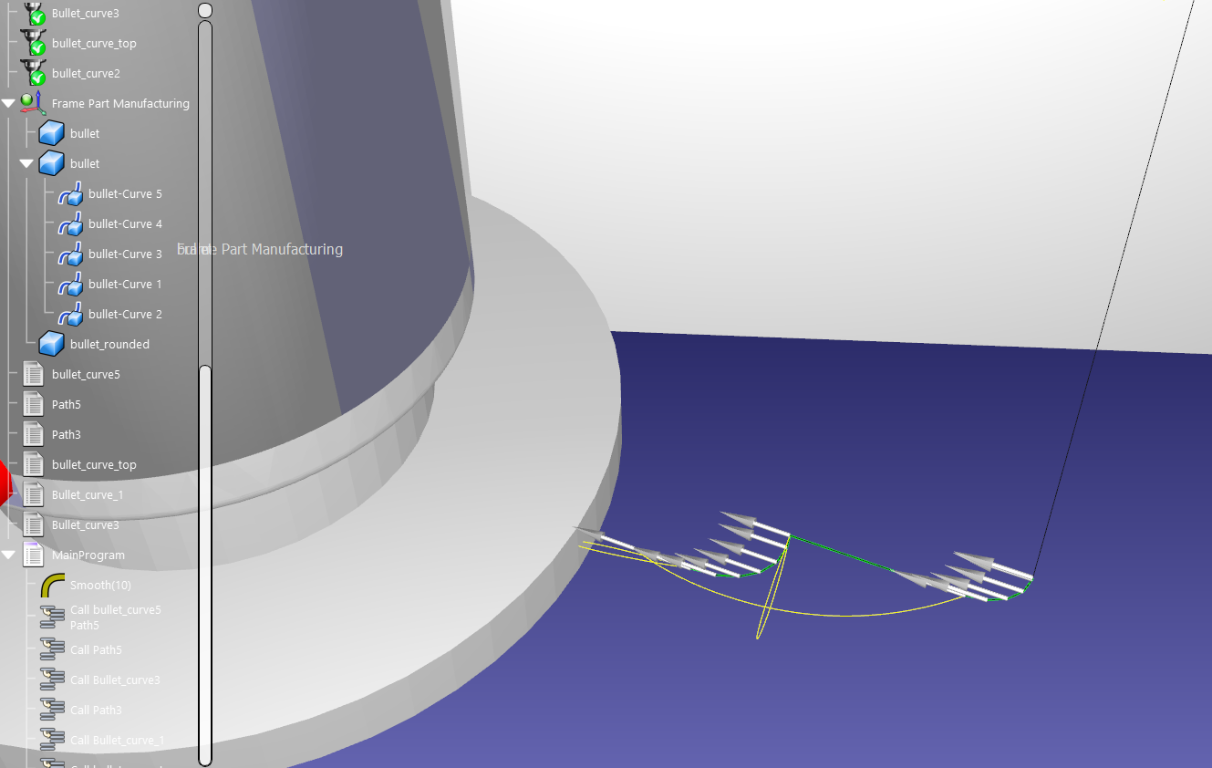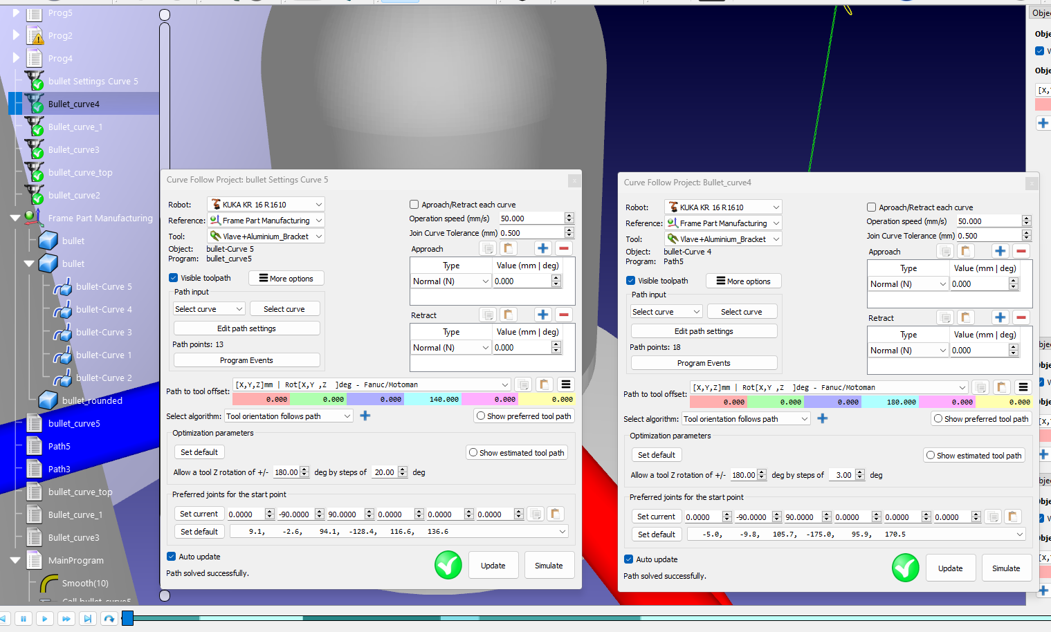I'm trying to link several curve follow path program together to have different orientation along the path without stopping and having a continuous motion.