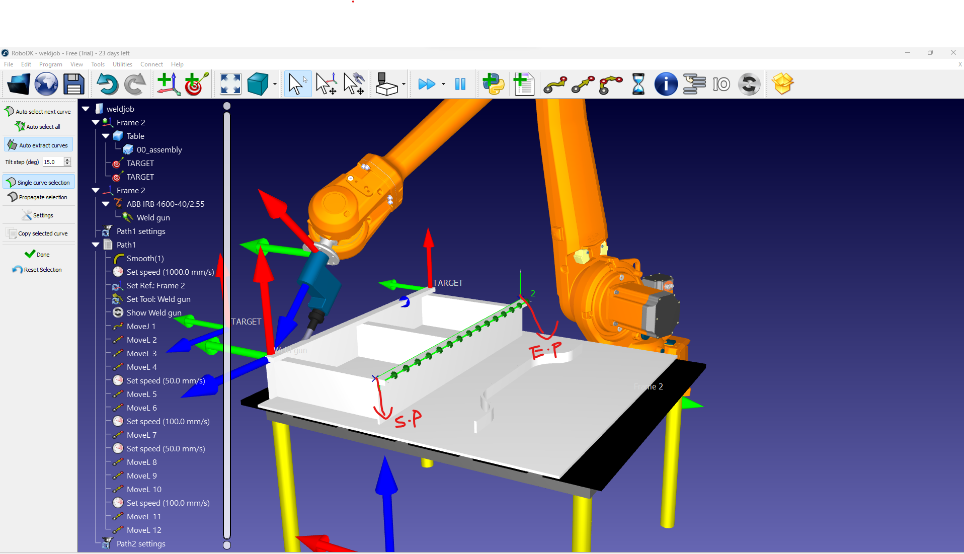 It is better to use the default curve extraction tool to have one straight line instead. If you can share the RDK project file and the 3D model we can better take a look.