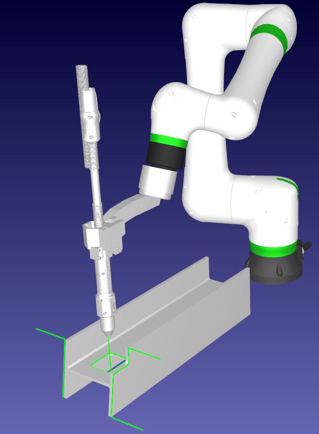 During the dry-run (before real cutting) on the web side of a small I-Beam,