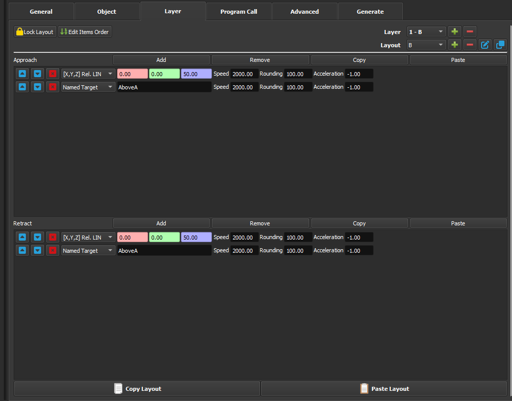 I'm working on a palletizing program and I need all the moves to be in relation to the frame I have defined. I have the program start by going to a target above my pallet "AboveA", then progress through some moves and a drop program, then I have it return to AboveA.