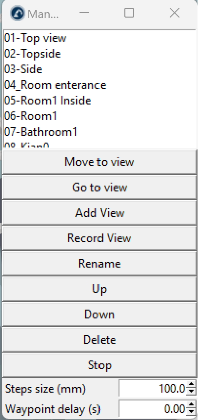 I have saved some views like in the figure and I want to go or move between these viewpoints in the python program I wrote based on the task schedule of the robots. And I did not understand how to declare these names (for example view 03-side) in the program. Unfortunately, there are not enough examples for some functions and methods in the RoboDK documentation. Is there a way that I can use these predefined viewpoints in my programming?