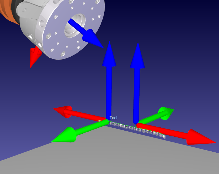 Here you can see that the white lines (arrows pointing downwards), while the tool z-axis and the part z-axis are both upwards: