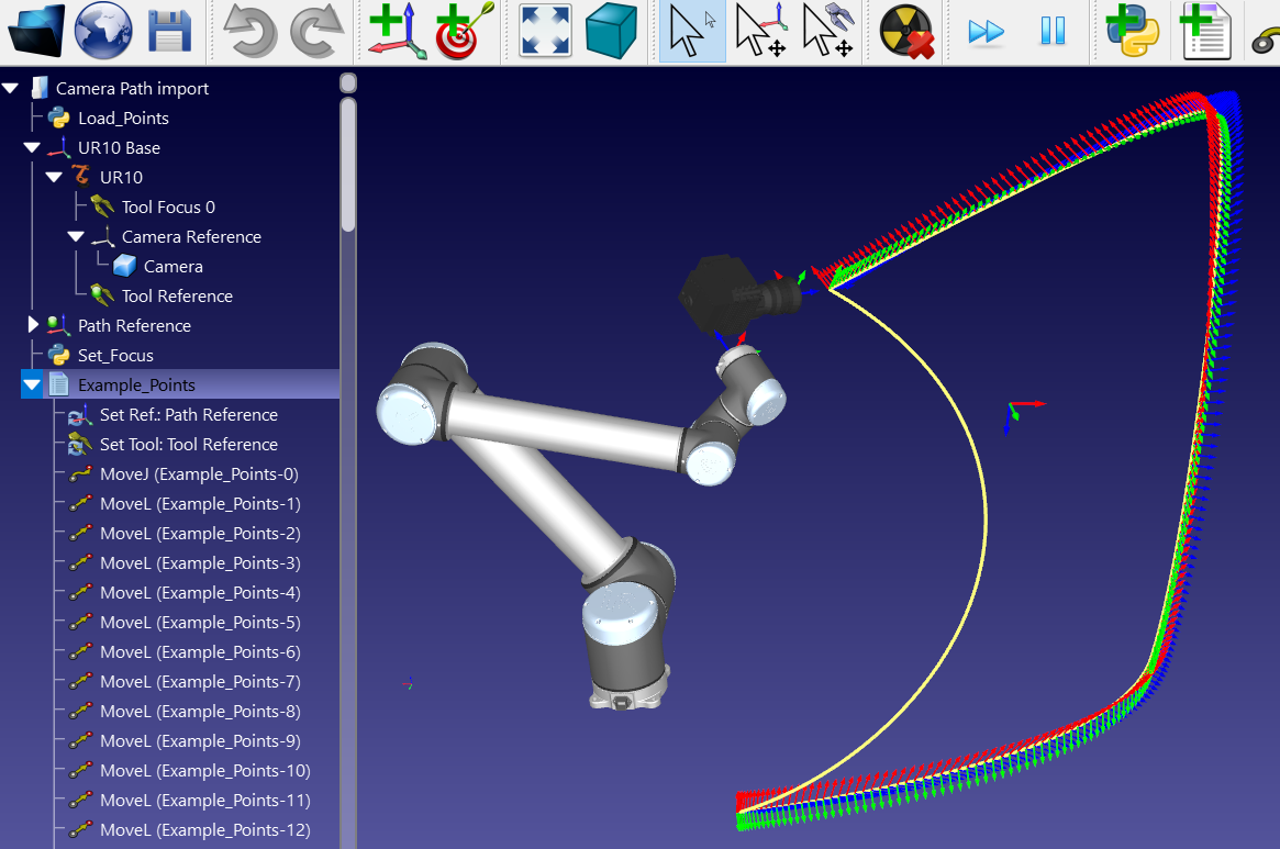 Also, I attached an example project that allows importing a list of points in RoboDK, automatically creating targets for each of the points and a program. The targets are created on the "Path Reference" coordinate system and it allows you to adjust the position of your targets.