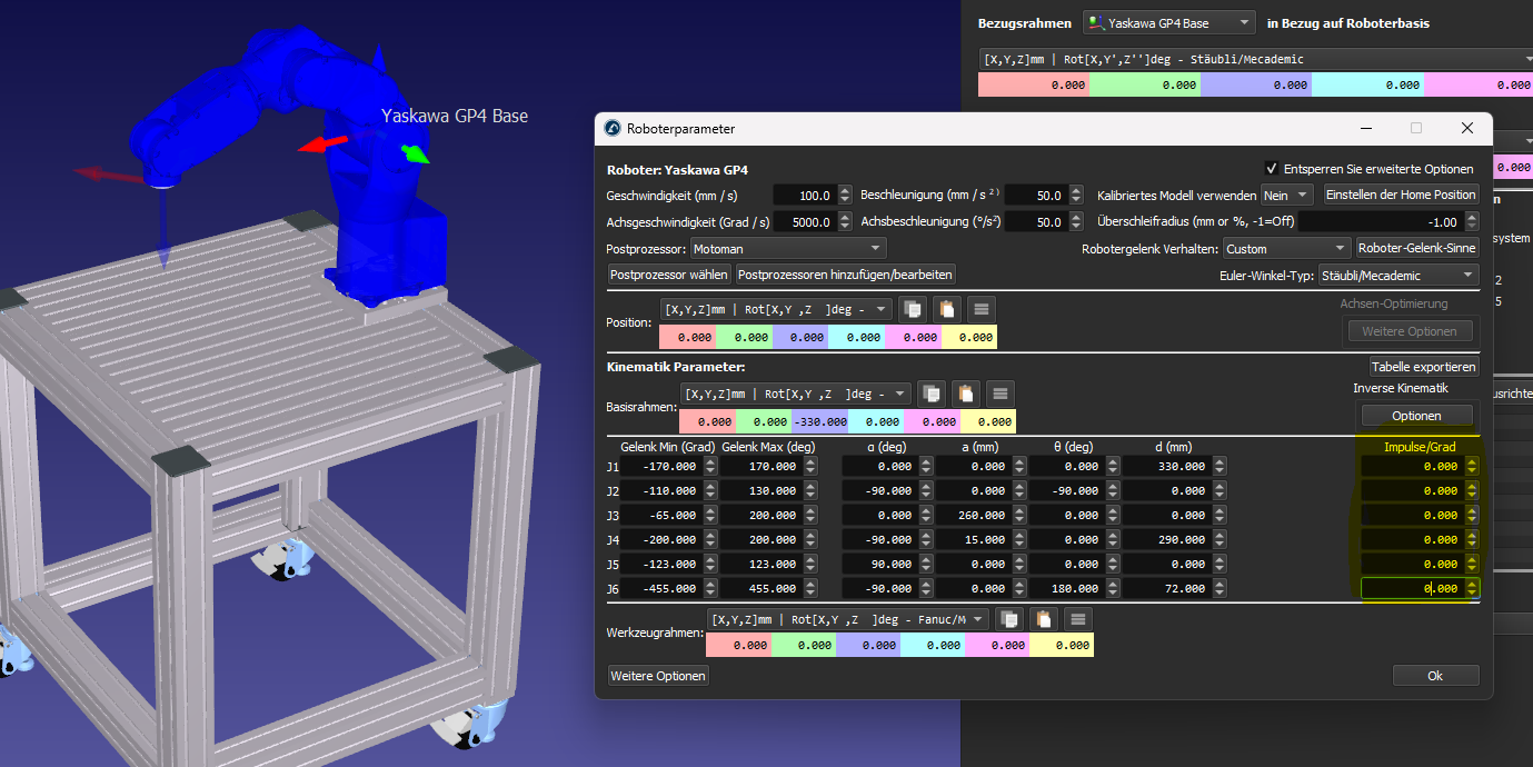 I am trying to import my ALL.PRM file from a Yaskawa GP4 into RoboDK in order to create robot programs. Unfortunately, this does not work as expected, since the MotomanALLPRM.exe tool does not seem to function. I read on the forum that you can send you ALL.PRM file to Robodk and they will calculate the Impuls/degree values for you. Can anyone help me with this?