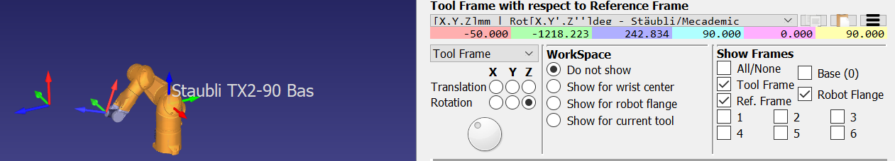 I have been working on a python program for a Staubli TX2-90 robot. I am attempting to adjust the angle of the tool. I first set the tool pose relative to the robot flange, then I move the robot to the home position using predefined joints. Then I retrieve the position of the tool, and adjust the relevant angle (saving it as a new position). I convert back to a pose, then use the MoveJ command to move the robot.