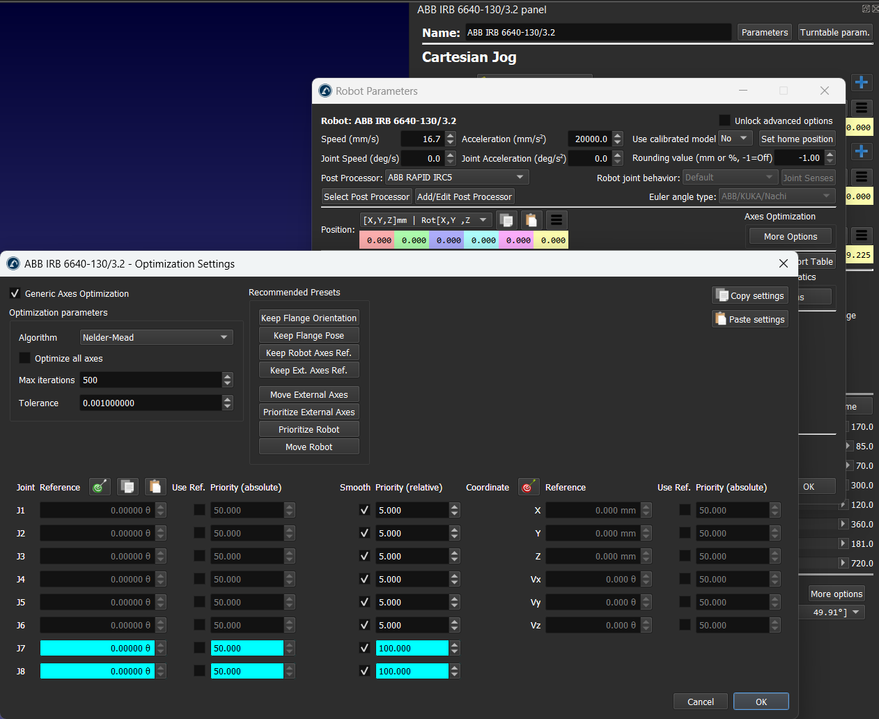 You can enable automatic Axes optimization in the robot Parameters menu: