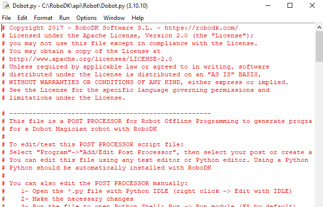 I recently started using RoboDK trying to control dobot Magician using online programming. First of all what I did was exactly follow the documentation and created a simple program to move the robot to a point and then back to the home position defined by targets.Everything looked great in the simulation and I successfully connected my robot with it. the status bar showed ready. In more options I selected DobotDriver but when I set the simulation to "Run on Robot" and double click my program it does not make the robot move along with it in the simulation the response is really fast. I am using RoboDK version 5.8 on windows.