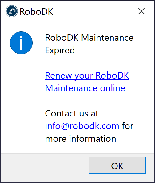 Firstly, I get an annoying pop-up stating the maintenance license expired every single time RoboDK starts up, over and over again. Can this pop-up please be turned off?