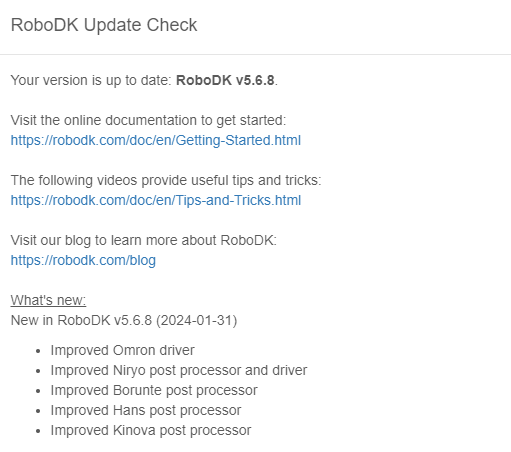 Checked the relevance of the RoboDK version