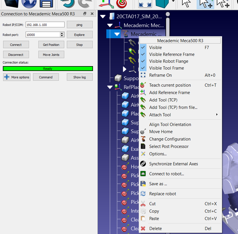 - Connect to robot using RoboDK