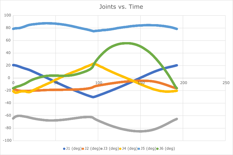 On the right side you see the excat problem, the joint angles are not like a spline but more like measurement data. What is the problem with that? I was using PyhtonAPI and the point follow project to create my kuka program. Thanks in advance! Michael