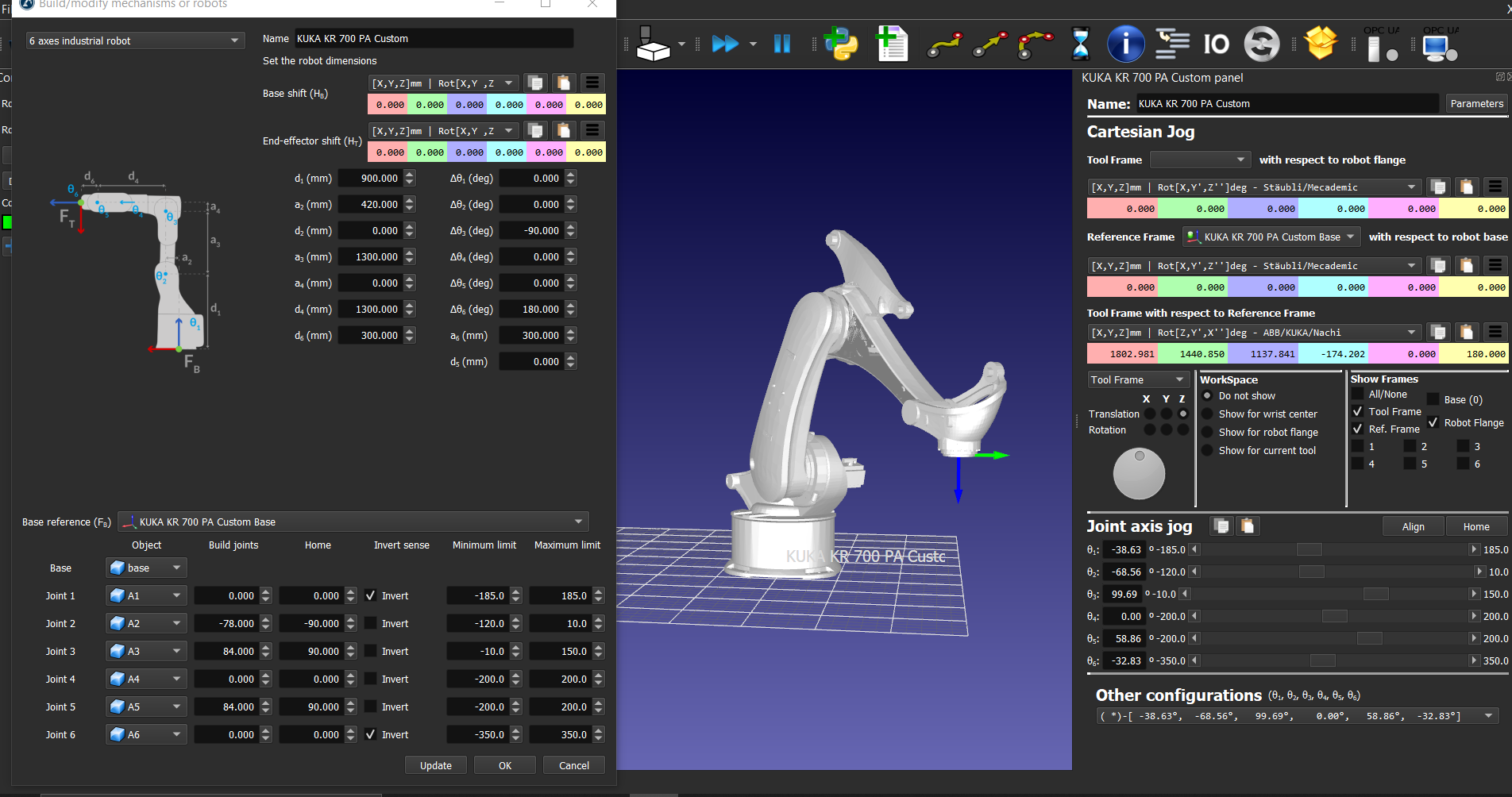 - Sending a position from RoboDK to the robot causes either a coordinate mismatch or, in some cases, valid coordinates set in the simulation cannot be reached by the real robot. I assume this is because not the coordinates, but the joint values (containing the invalid A3 joint) from the simulation are transferred to the controller.