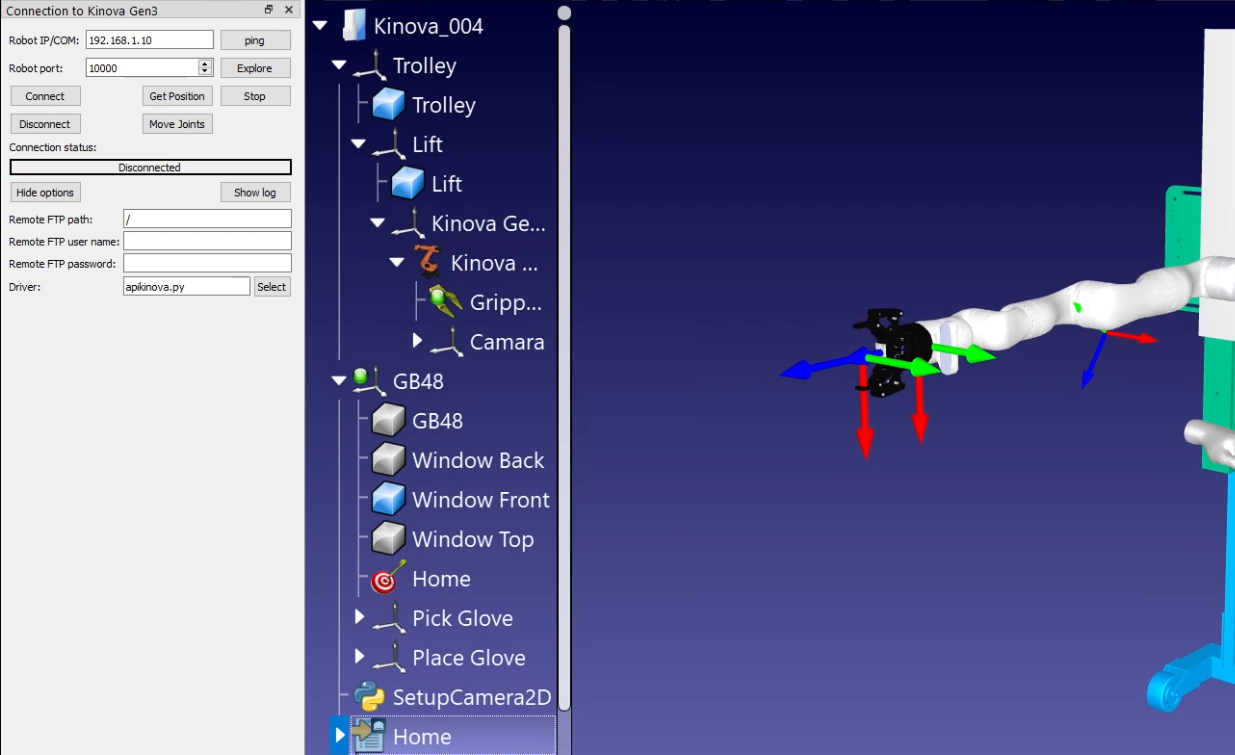 In the option Connect to robot, in addition to writing the Robot IP / COM: I had to open Hide options / Driver: Select / apikinova.py click OK,