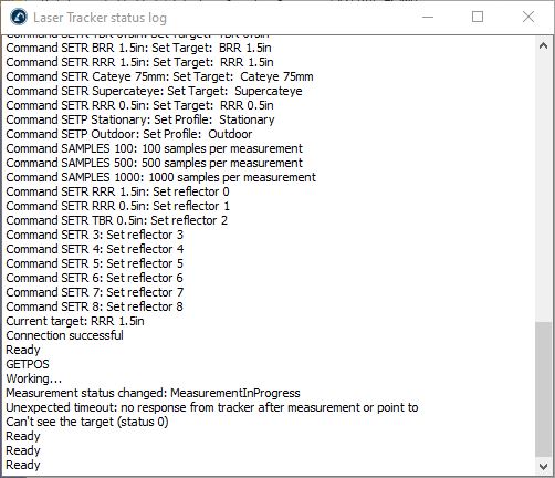 I´m trying to connect with LEICA AT-402 Laser Tracker, it seems that connect correctly and I´m able to initialize the instrument, when I click the butom "MEASURE" on the Laser Tracker connection interface, appears the following message on the log: