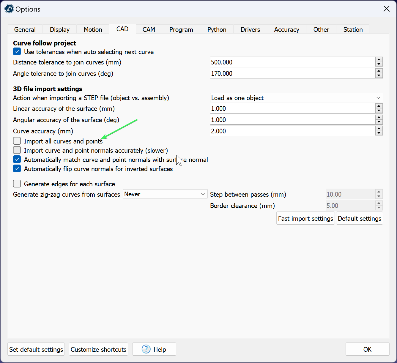 Tools ⮕Options in the CAD tab.
