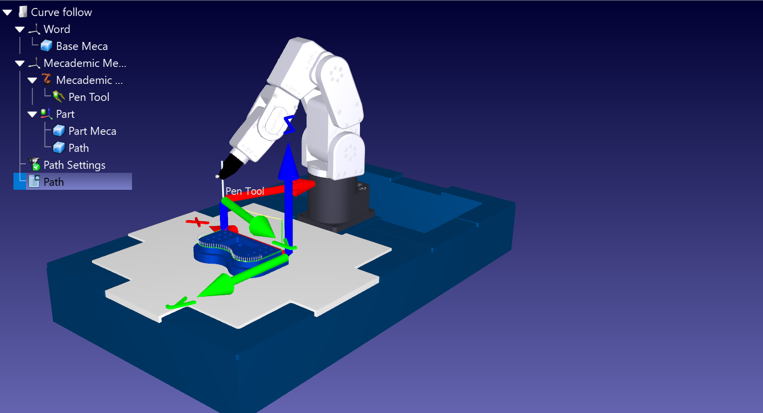 Meca500 Curve follow not fluid