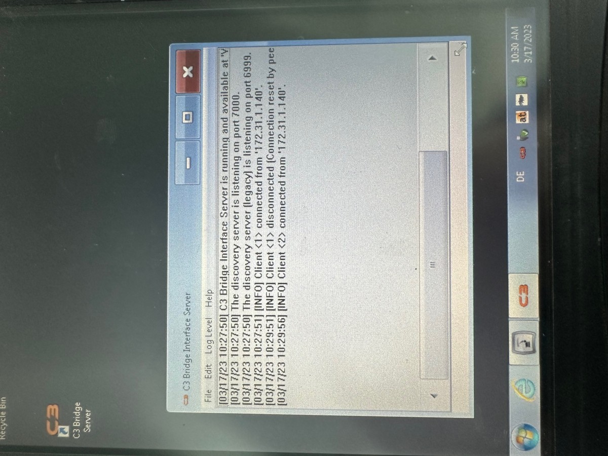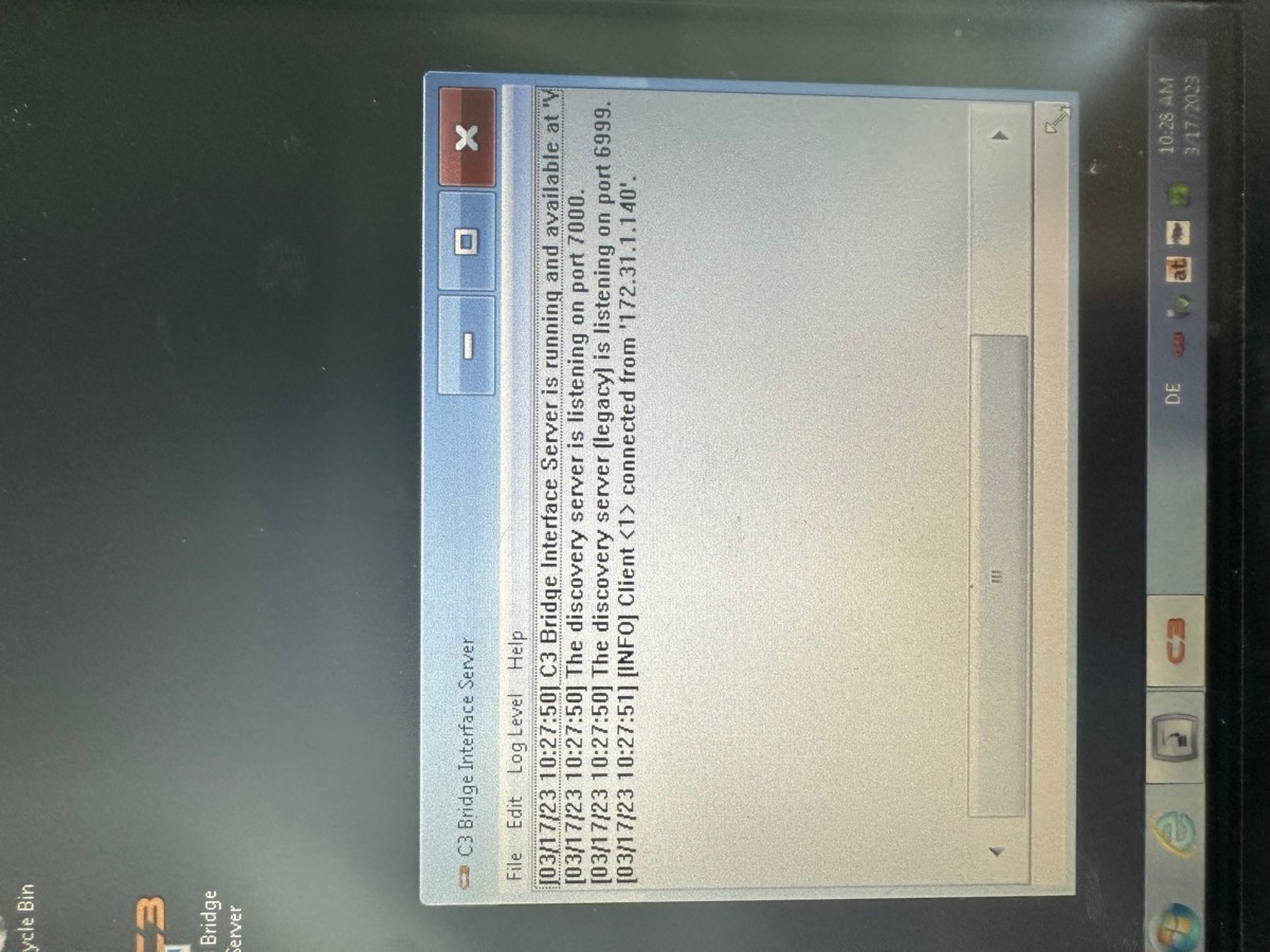 It would also be nice to see a screenshot of the C3 Bridge window at the same point in time.