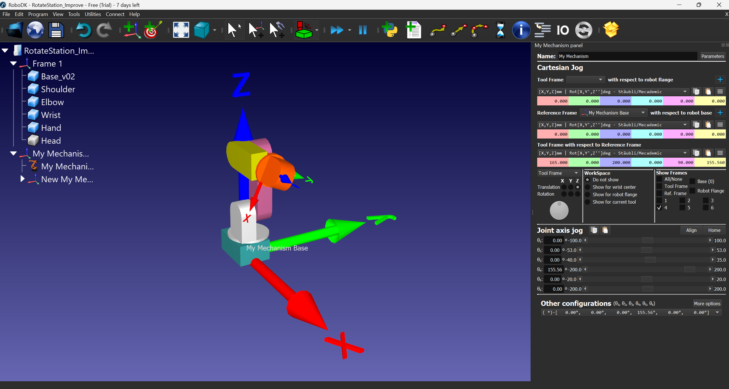 I'm having trouble moving a pivot point of a customized robot model's joint, as you can see after setting 'Model Mechanism' the pivot of my orange joint doesn't sit in the center of circyle. Therefore when it rotates along z axis, it goes way off, which it should stick fully with the yellow component.