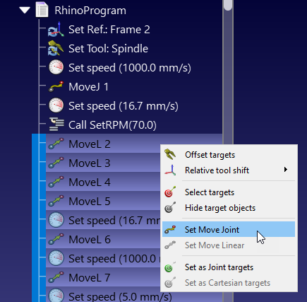 how do I change it from linear movement to joint movement? the settings by default for the exported program are always linear! is there is any way to change that?