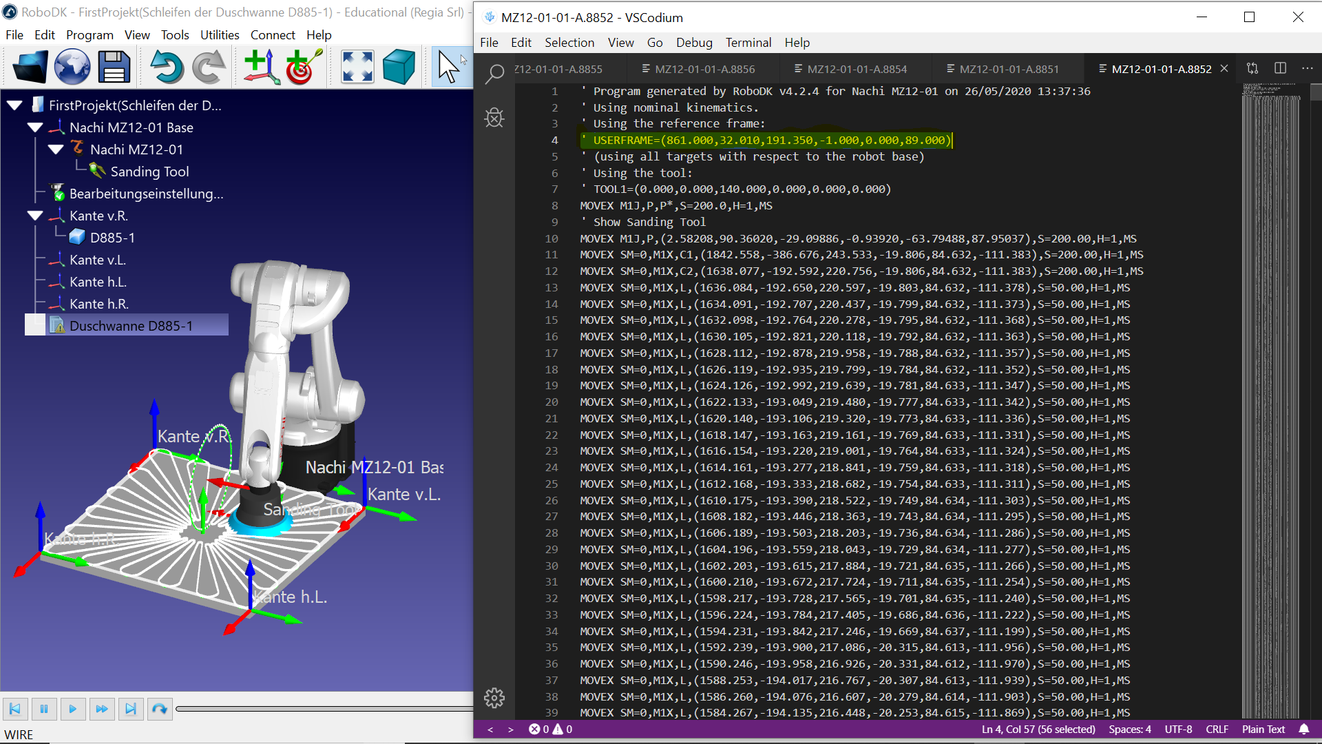 When I'm generating my programm for sanding with a Nachi MZ12-01 it gives my points shifted by the value of the userframe.