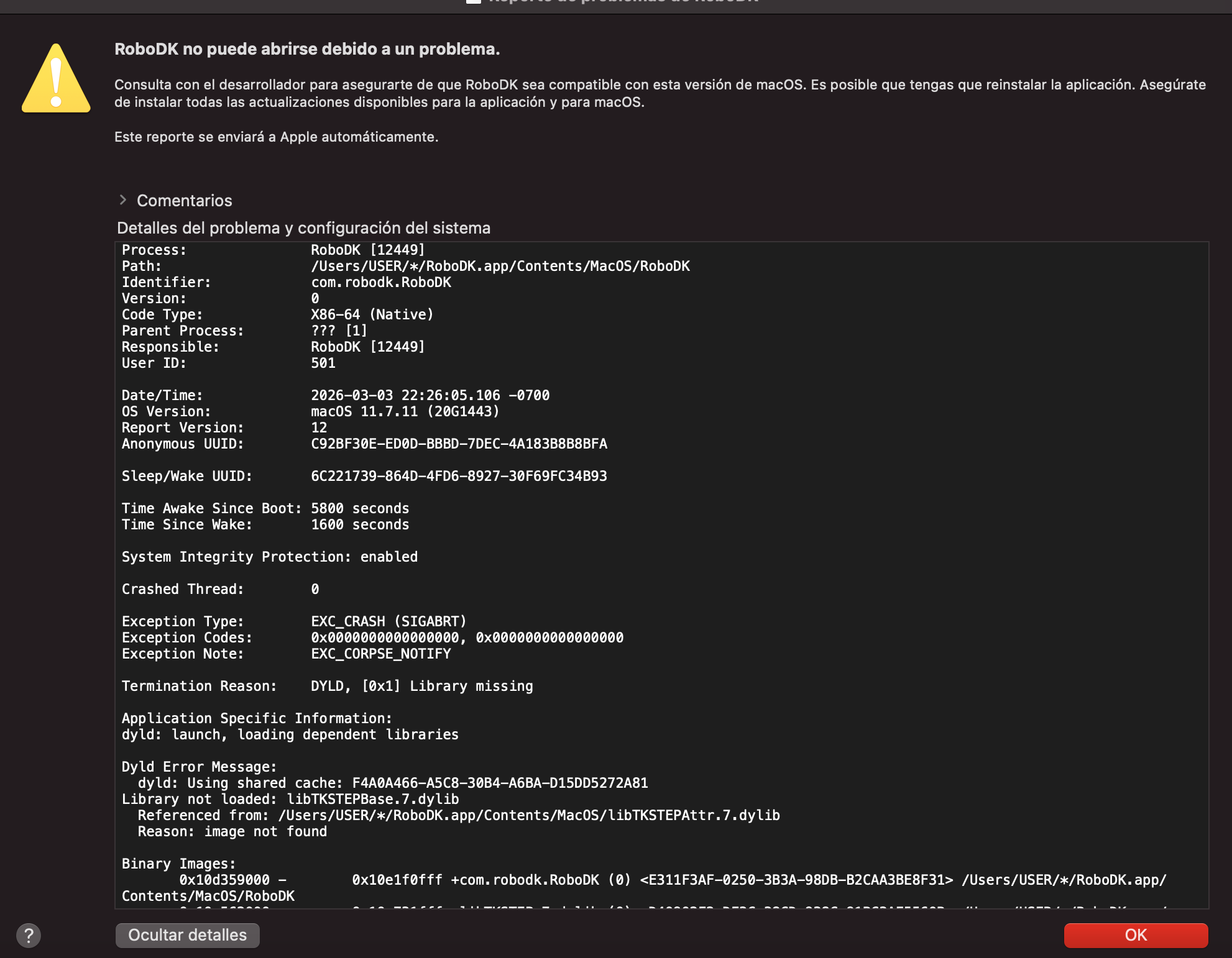 When I try to open the app, it says that the RoboDK version is not compatible with my macOS. I installed the current version and tried installing version 5.9, but it still won't let me open the app.