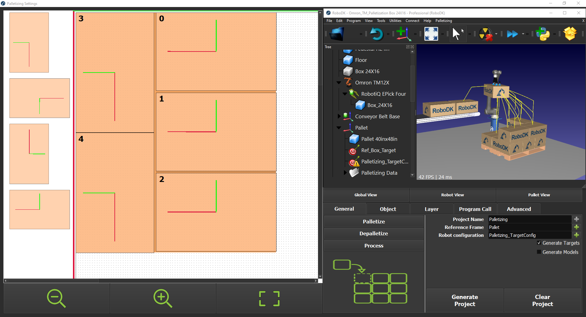 A feature that lets you create a palletizing, depalletizing, or processing robotic station in a very visual and intuitive way.
