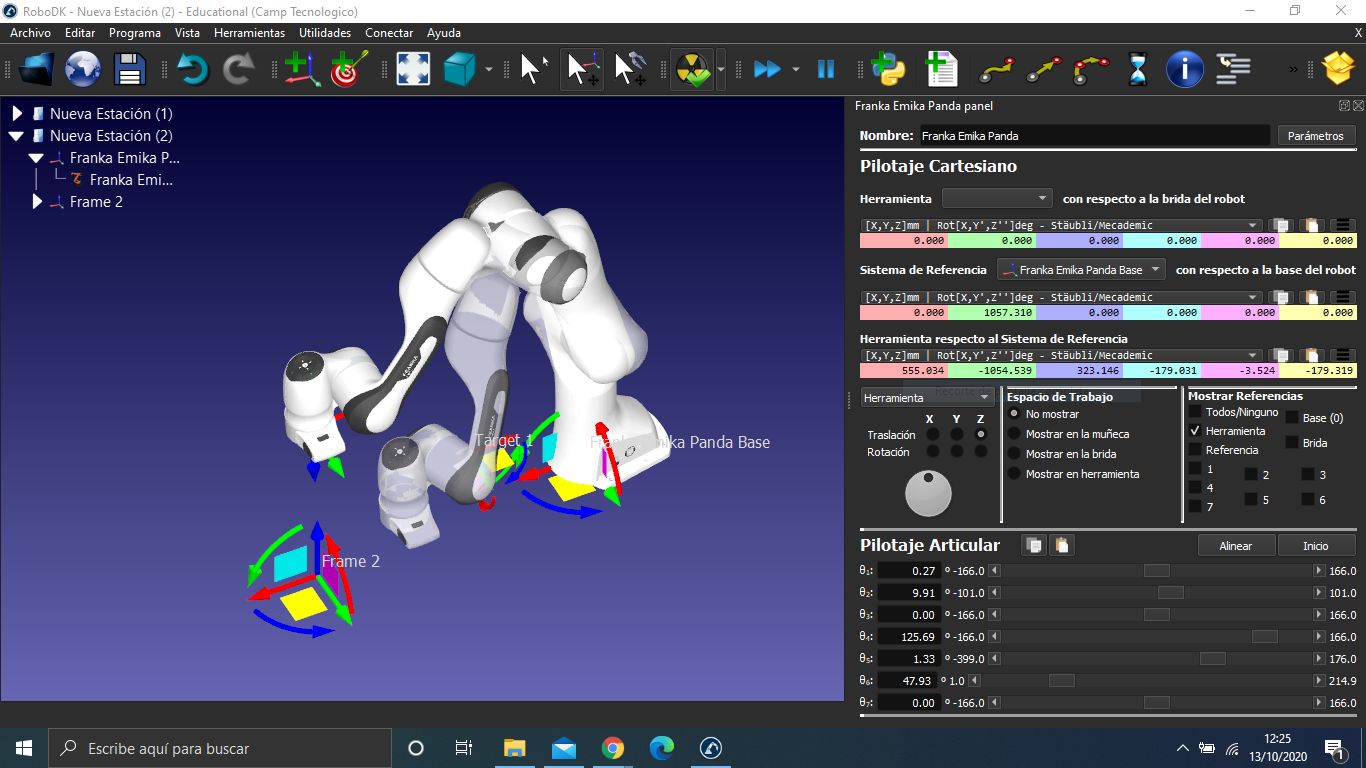 I have managed to introduce the 3d model and create the robot model with the limitations of the axes within roboDk, I have created the robot file, but I have a problem that I cannot solve, since when entering a target it produces an offset with respect to the flange. I leave an image to show the error that I have, can someone tell me how to eliminate that offset?