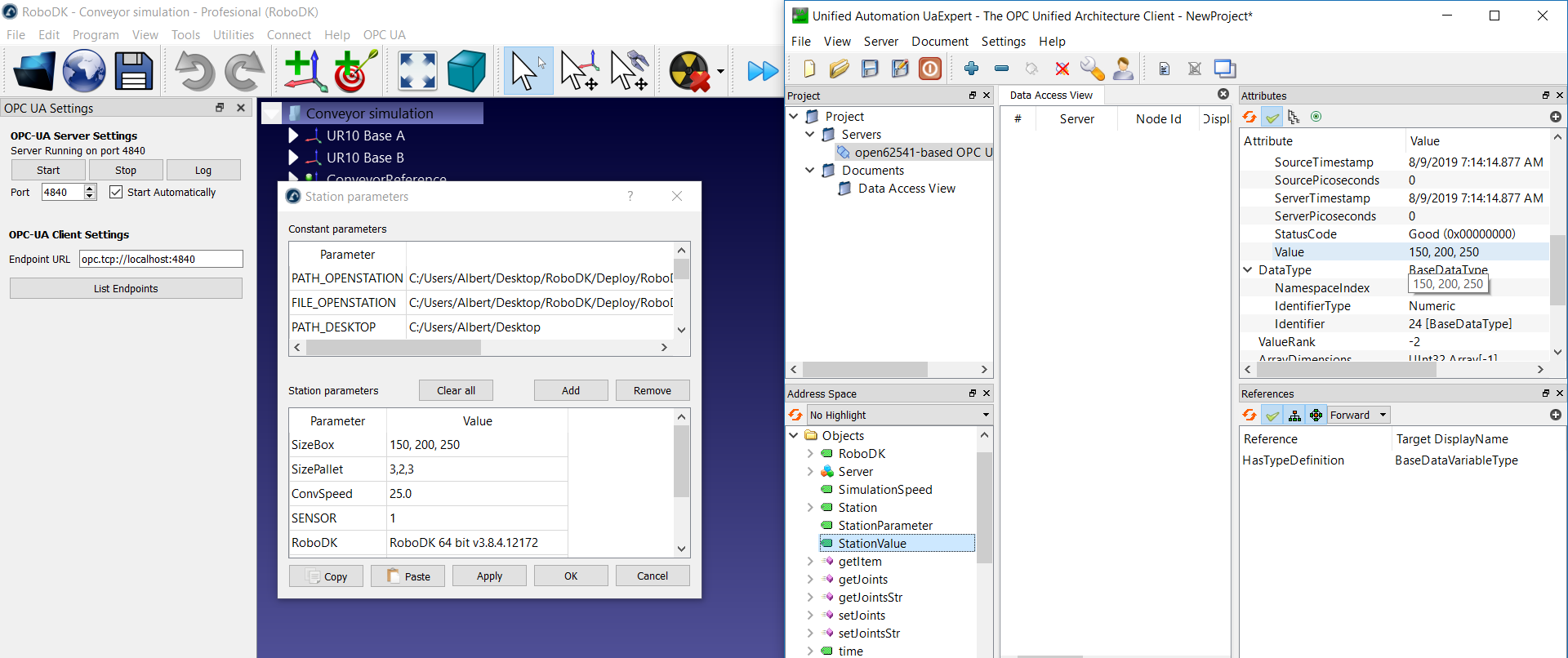 You may need to customize the plugin if you want to use RoboDK as an OPC-UA client (it currently retrieves the station parameters of a RoboDK server as an example). This plugin is open source and available on GitHub (it uses the OPC-UA Open62541 library).