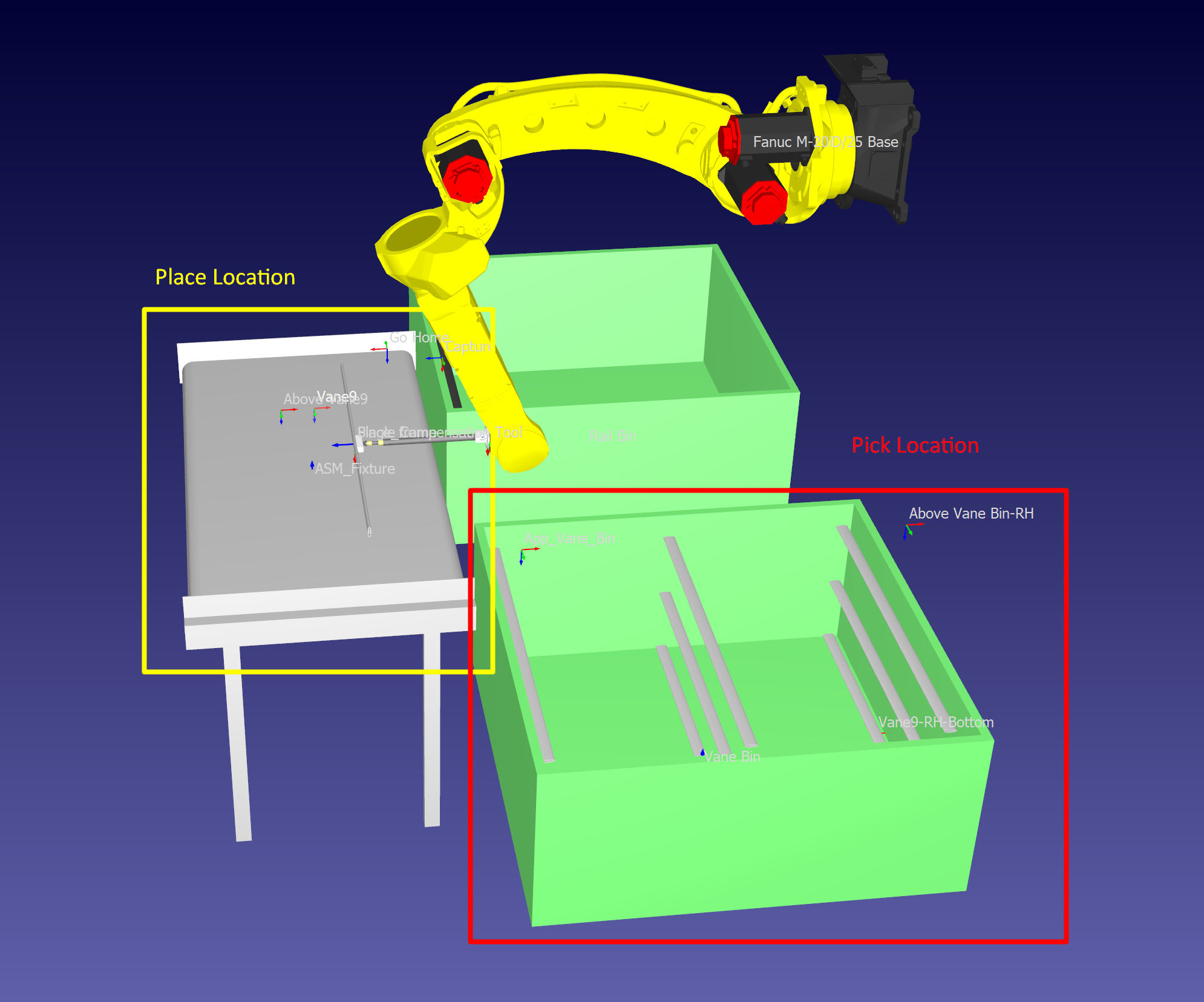 When I am using the palletizing panel, I can only create a program having the "Approaching to targets" and "Moving to targets" for all parts. However, when when I am use the function "Call Pickup Item", it seems to me the the robot always picks the very first item in the nest program but not pick up the rest of items.