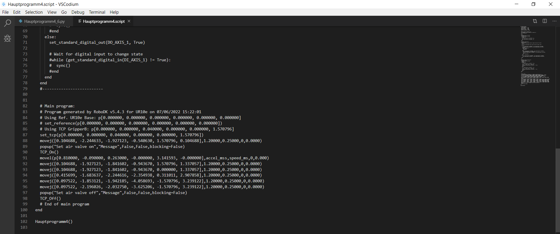 The funny thing is that i can generate a script file from my "Hauptprogramm4". The next step would be to call "Hauptprogramm4" in Prog4 (...to call "Hauptprogramm4") and send it to the robot. Do you have any idea to solve the problem?