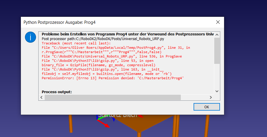 i would like to test my program on the UR10e robot. Every time i want to load my program on the UR10e, this error message appears (sceenshot, permission denied). The UR10e is connected, i use the postprocessor "Universal_Robots_URP", roboDK v5.4.3, python 3.7.3. I installed roboDk as an admin.