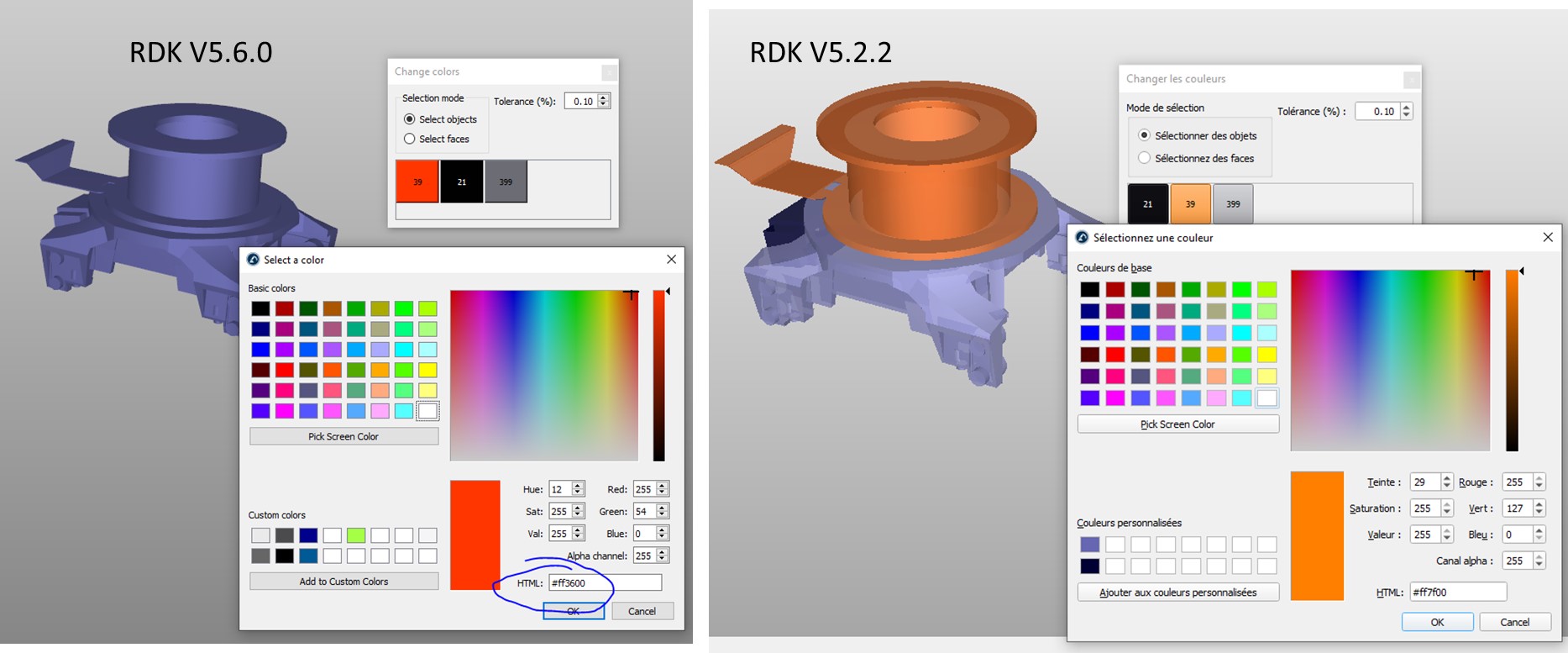 I noticed that even the colors values are not the same when importing the same .stp object : (image1.jpg)