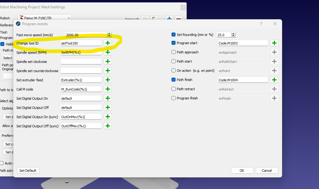 i want a different output from my post processor when a toolchange is seen at the start of the path, so in the program events 'Change Tool ID' i put a different sub program call but this is not working. I have included the file for you to view. instead of the normal output of 'setTool' in my post, i want to output something different, i've tried calling 'setTool' with a different number argument and i've tried calling a different program all together with no success.
