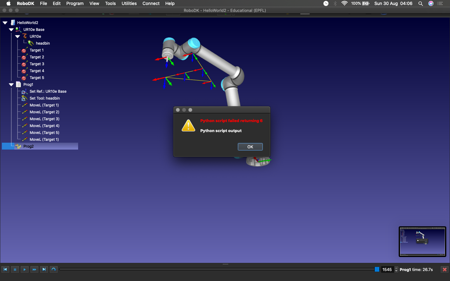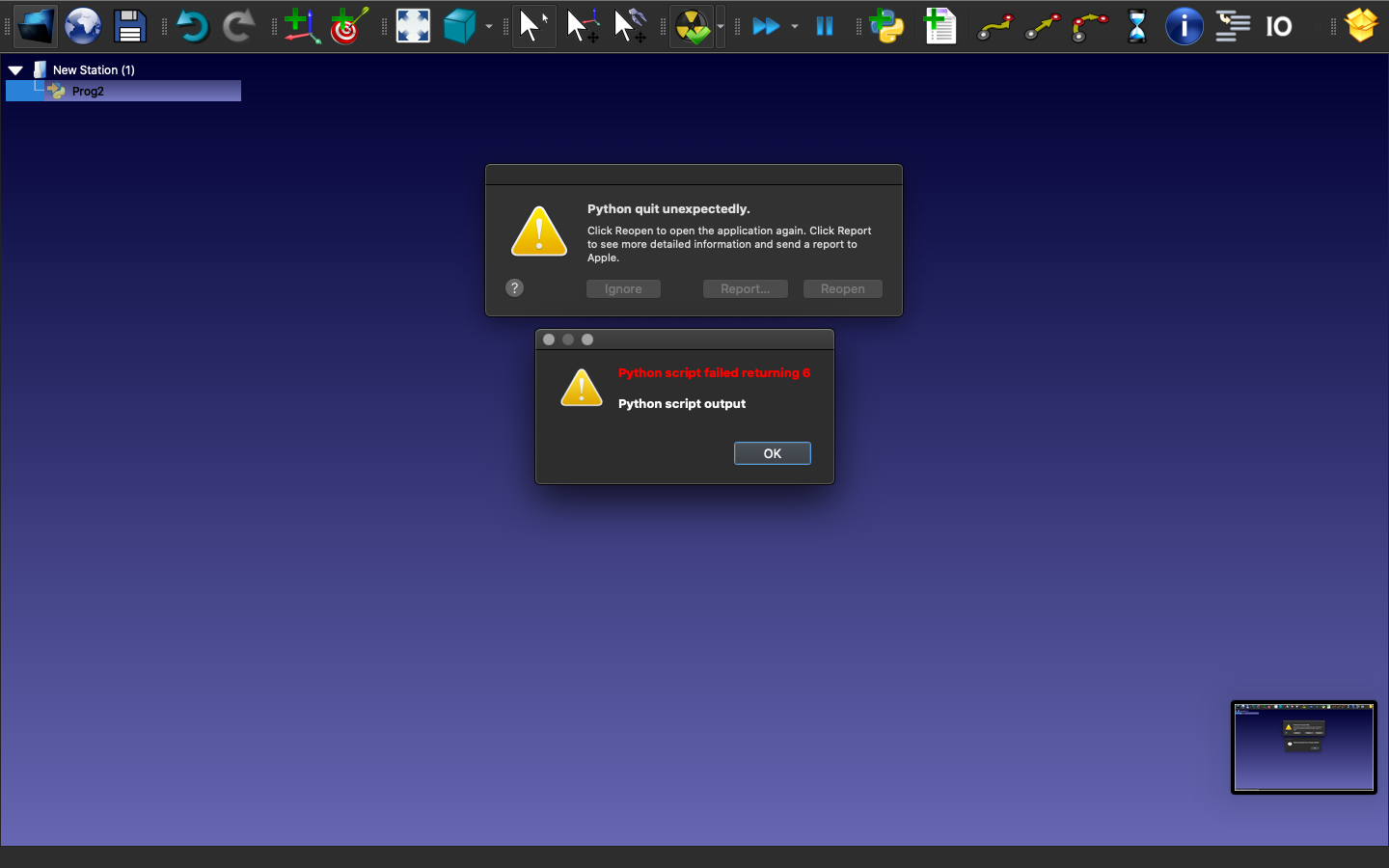 The same program runs on a windows system, but not on a mac. Also, the same code is running from the mac terminal, but not from inside RoboDK, so clearly this is a problem with RoboDK. Maybe it does not have permission to access the macbook camera? Kindly try to resolve this.