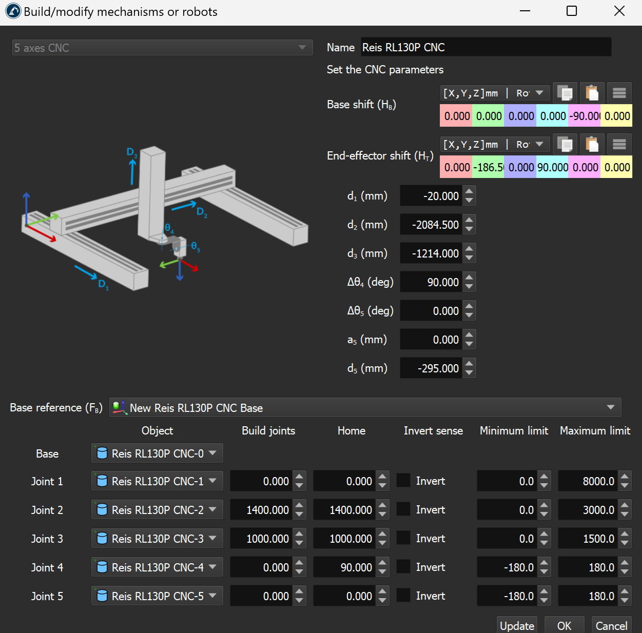 For example, I attached the parameters we used to create the Reis RL130P CNC mechanism you can find in our library: