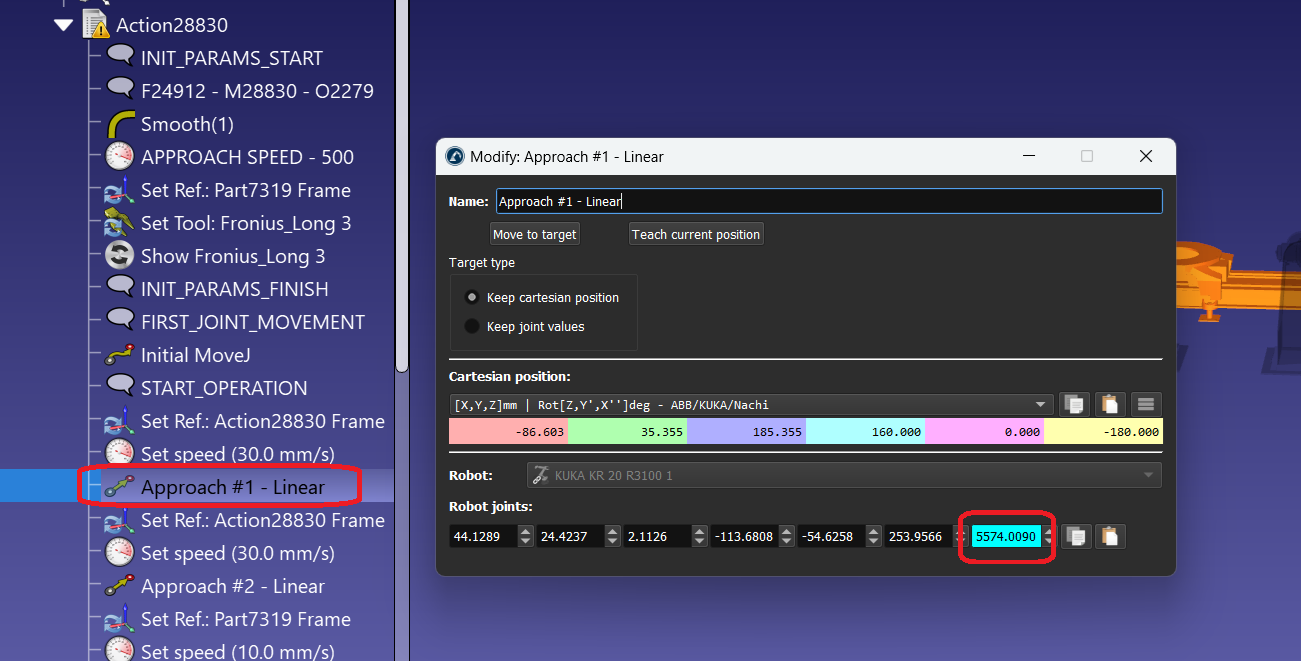 I've tried using Optimize Axes but it would still move the rail, setting the rail's position to where I need it to be before adding the instruction, and tried solveIK to get the joints but I would get an error that linear movements with a joint is not valid.