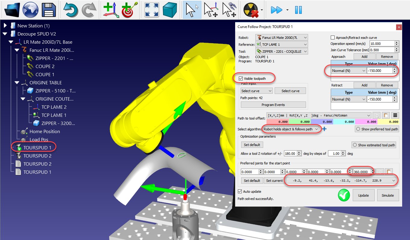 i'm trying to cut a hole into a part using a knife blade. The part is held into the robot arm and the blade fixed in space.