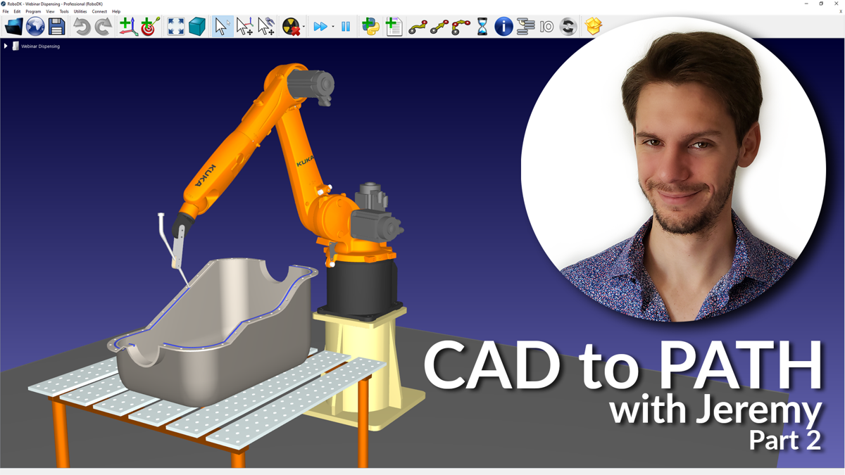 Register now to RoboDK's next LIVE WEBINAR session, next **Thursday, April 30th at 11:00 am ET**, about CAD to Path-Part 2 and learn with our RoboDK expert, Jeremy, how to easily program your robot to follow curves.