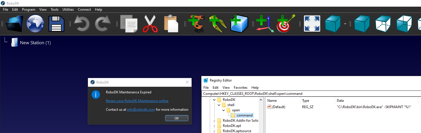 Albert, the conclusion of the thread you linked was that it is possible to avoid the maintenance reminder popup when starting RoboDK from the start menu. However, no solution was found that avoids the maintenance reminder popup when starting RoboDK by double-clicking a .rdk file.