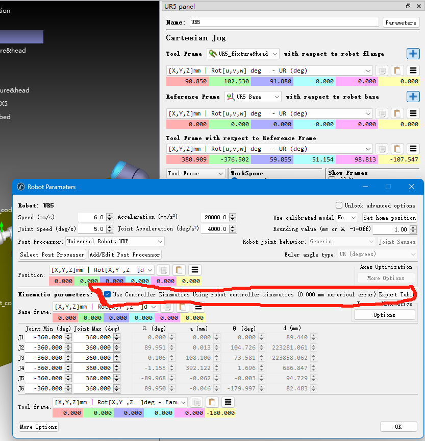 After checking the function of "Use Controller Kinematics Using robot controller kinematics" in UR5 panel parameters button. I am unable to drag the TCP frame to move the UR robot anymore as shown in Fig1.