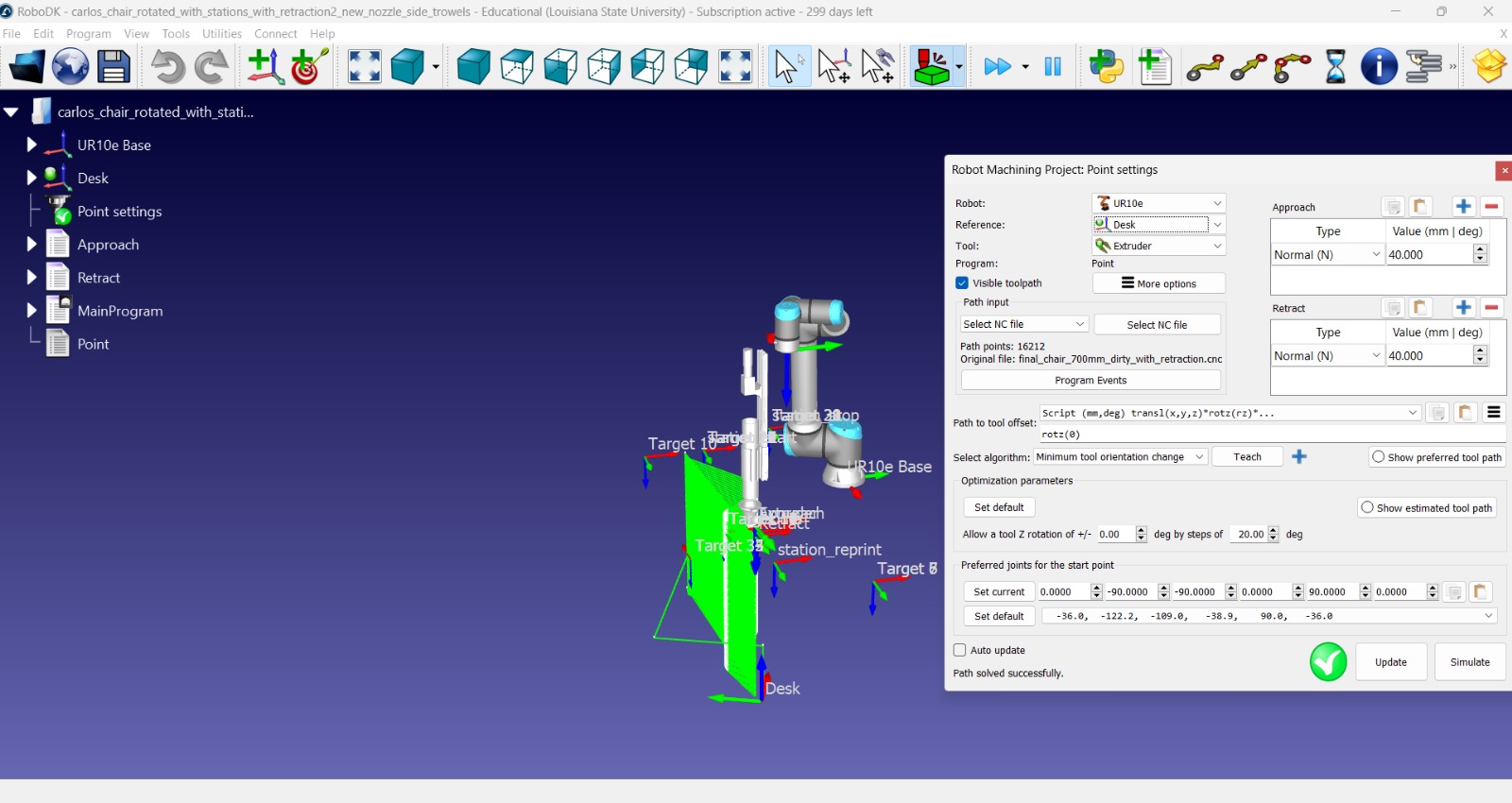 I'm currently trying to control a UR10e robot with RoboDK. When using the "Tool orientation Follow Path", the simulation runs perfectly, but when sending the program to the robot, the path is not followed.