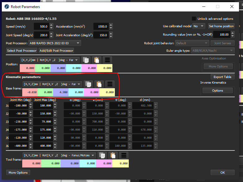 I have attached a picture showing what we did in our initial 3D abb model. We have just modified manually the base frame of the 3D robot model to adjust it to our real robot. Then, we are calibrating manually the virtual robot to the real robot and get more accuracy in our OLP programs. Am I right?