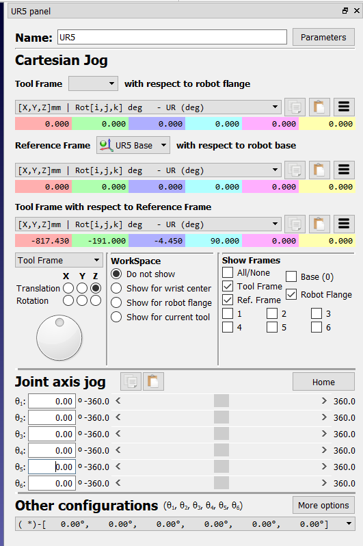 Is there a way to extract rotation matrix? The Mat which is returned when calling robot.SolveFK contains the information about the pose of the robot where the first three elements of last column represent the X,Y,Z positions. Is the 3x3 (first three cols and first three rows) of Mat is rotation matrix? If I use the Pose_2_TxyzRxyz and then construct the rotation matrix using Euler angle convention rotz*roty*rotx (I am not sure if this method is right), I end up with different result than 3x3 of Mat. I would appreciate any help.