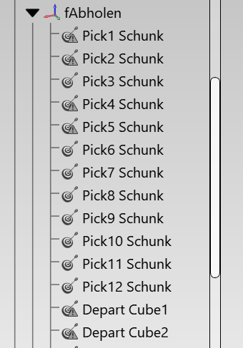 The positions are included in the simulation. When I download the programme, e.g. Grip1_Place.mod, only the names of the tool and work object are included. The names of the positions, however, are not. This makes it almost impossible to read the module in an editor when there are many positions, as only the coordinates are shown and not the position names to which they are linked.