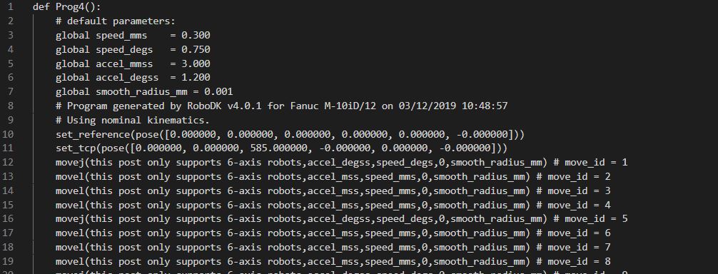 However, the RSI post processor outputs a generic program AND a "control" file which includes a point at desired/constant steps (in mm, deg or time). This is accomplished using the API call to InstructionListJoints on a program.