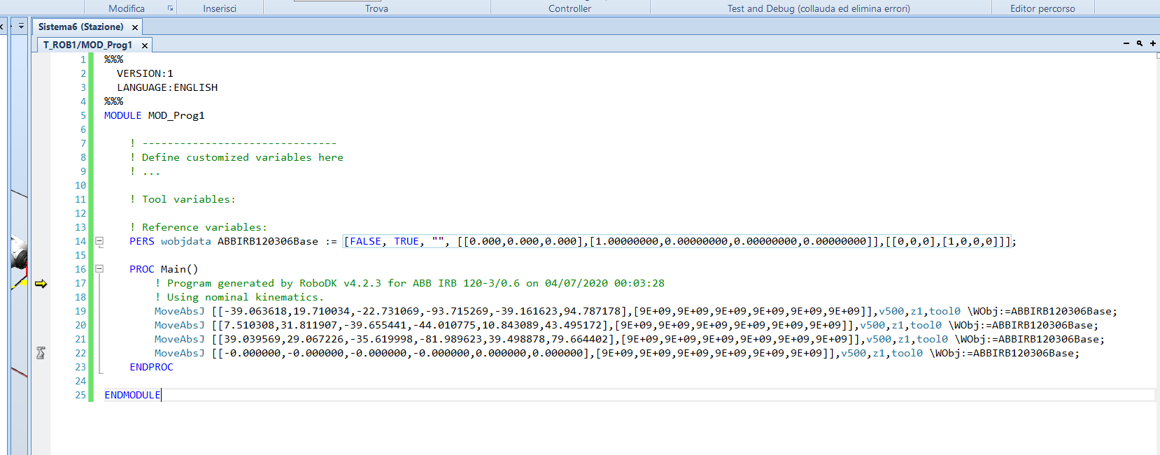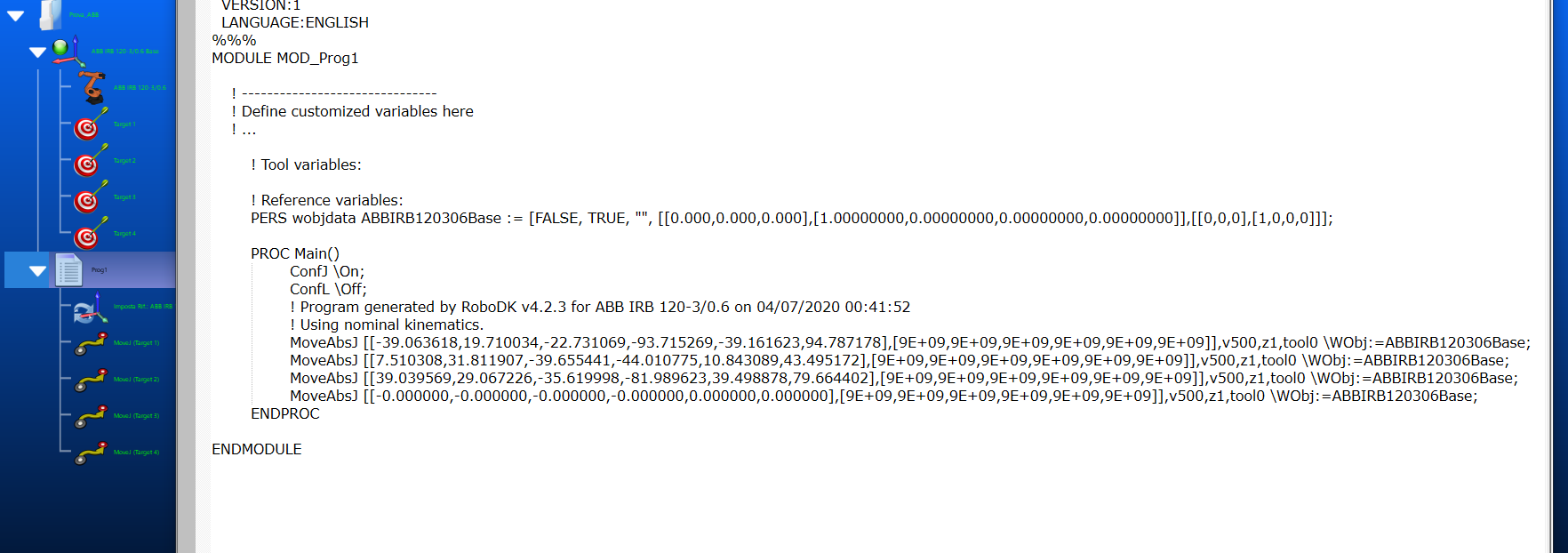 I created a station in RoboDK and I copy the program and imported it into the ABB simulator and ran it.